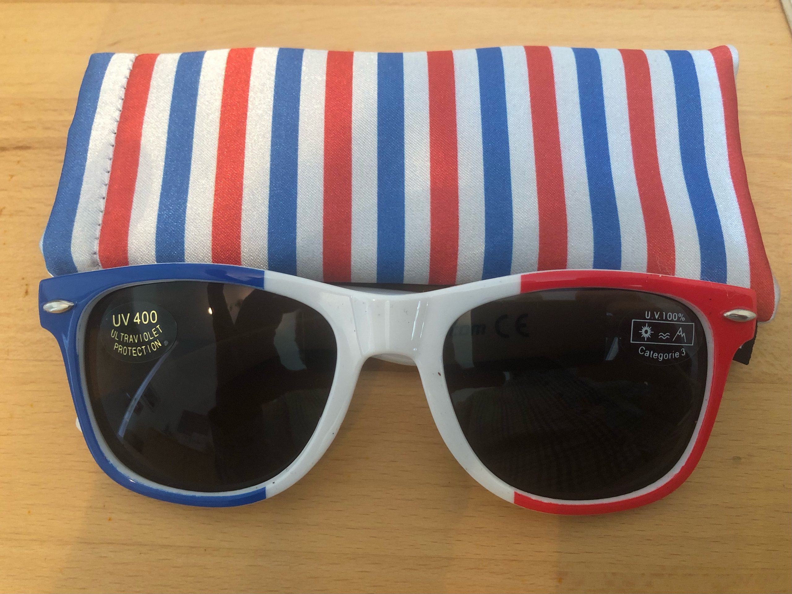 Hej Hej Dottoho! Hochwertige Sonnenbrille im Flaggen-Design in rot-weiß-blau aus Kunststoff, erstklassig verarbeitet. Ausführung unisex. Lieferung inkl. Brillen-Beutel aus Mikrofaser im Blockstreifen-Design in Landesfarben.